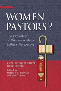 I grew up as a member of the Lutheran Church-Missouri Synod, a church body which rejects the ordination of women to the role of pastor. The publishing branch of that denomination, Concordia Publishing House, put out a book entitled Women Pastors? The Ordination of Women in Biblical Lutheran Perspective edited by Matthew C. Harrison (who is the current President of the LCMS) and John T. Pless. I have decided to take the book on, chapter-by-chapter, for two reasons. 1) I am frequently asked why I support women pastors by friends, family, and people online who do not share my position, and I hope to show that the best arguments my former denomination can bring forward against women pastors fail. 2) I believe the position of the LCMS and other groups like it is deeply mistaken on this, and so it warrants interaction to show that they are wrong. I will, as I said, be tackling this book chapter-by-chapter, sometimes dividing chapters into multiple posts. Finally, I should note I am reviewing the first edition published in 2008. I have been informed that at least some changes were made shortly thereafter, including in particular the section on the Trinity which is, in the edition I own, disturbingly mistaken. I will continue with the edition I have at hand because, frankly, I don’t have a lot of money to use to get another edition. Yes, I’m aware the picture I used is for the third edition.