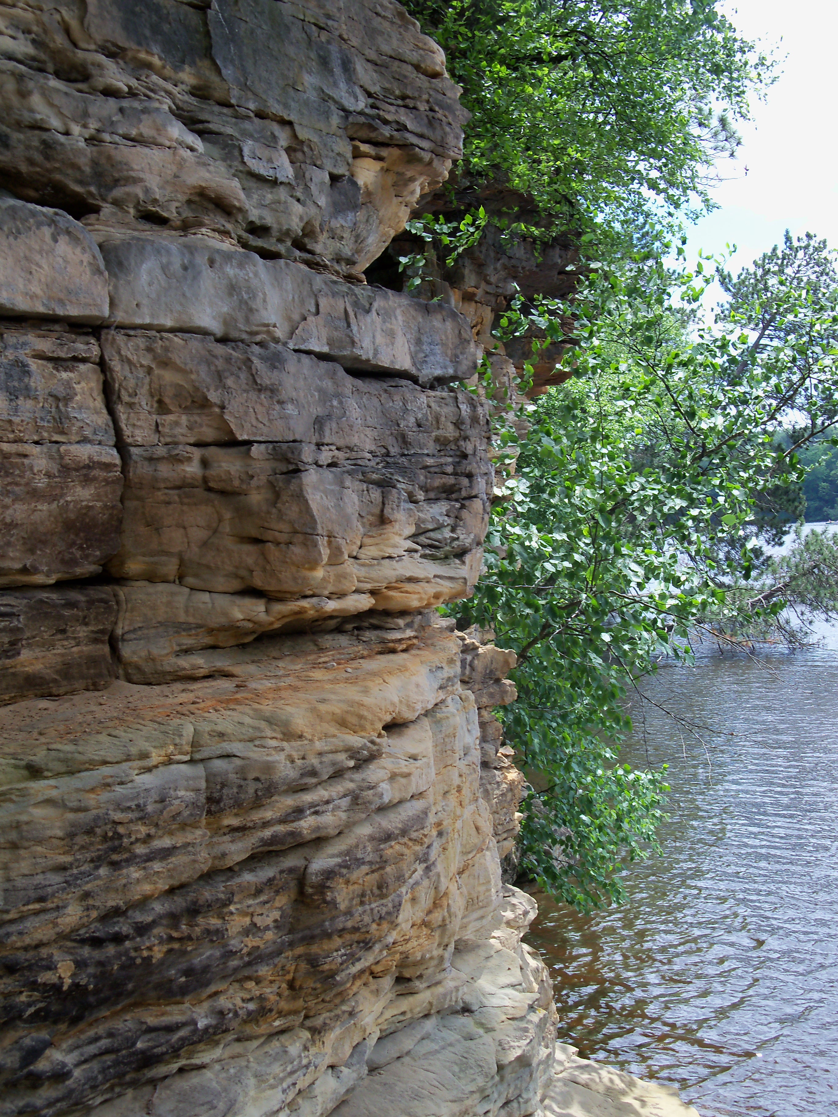 Take a look at the photo above. The stone you see there is largely sandstone, layered upon itself. One can go up to the wall and crumble some of the rock between one’s fingers. The layers are extensive, going several dozen feet above the water level before diving below the surface. Where did all this sand come from? Why is it now here, above the ground and exposed?